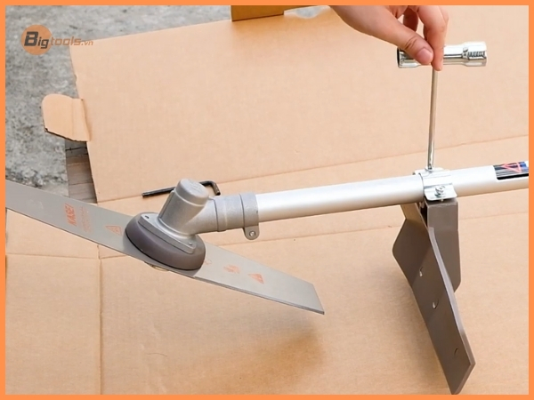 Đây là công đoạn cuối cùng và cũng là công đoạn đòi hỏi sự chính xác cao nhất. Việc lắp đặt đầu bò và lưỡi cắt đúng cách sẽ quyết định hiệu suất cắt và sự ổn định của máy khi vận hành. Chi tiết về quy trình này sẽ được Bigtools trình bày cực kỳ kỹ lưỡng ở phần tiếp theo ngay sau đây.