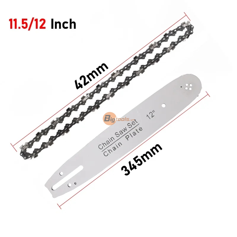 Đây là bộ linh kiện tiêu chuẩn dành cho các dòng máy cưa xích chạy pin cầm tay có kích thước lam 12 inch. Với chiều dài vùng cắt lên tới 30cm, bộ sản phẩm này biến chiếc máy pin của bạn thành một công cụ khai thác gỗ thực thụ, không chỉ tỉa cành mà còn có thể hạ cây, cắt củi gộc hiệu quả.