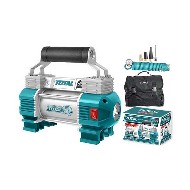 Total là thương hiệu nổi tiếng thế giới cung cấp các sản phẩm dụng cụ cầm tay, dụng cụ dân dụng, và các giải pháp và thiết bị an toàn. Nhãn hiệu Total có xuất sứ ở Đức và được sản xuất tại Trung Quốc theo các tiêu chuẩn của Mỹ, EU và Úc.Các sản phẩm của Total luôn hướng đến tương lai với công nghệ sản xuất ngày một phát triển đem lại lợi ích tối đa và giá thành tối thiểu cho người sử dụng.Total mang mang đến sự lựa chọn đa dạng cho quý khách hàng.Các sản phẩm của Total cung cấp cho người dùng rất nhiều lựa chọn từ dụng cụ điện cầm tay như máy khoan, máy đục, máy mài, máy cửa tới dụng cụ dân dụng: búa, kềm, tua vít, bút thử điện, thước…. Với thiết kế đẹp mắt với kiểu dáng hiện đại. Do được làm từ chất liệu cao cấp nên dụng cụ cầm tay Total có thời gian sử dụng lâu bền. Total luôn mang đến sự tiện ích cho khách hàng với các sản phẩm gọn nhẹ, linh hoạt phù hợp với các công việc đòi hỏi di chuyển nhiều và đa dạng hóa công việc khi sử dụng.Dụng cụ kiểm tra áp suất lốp xe oto TOTAL TTAC2506Thông số kỹ thuật của Dụng cụ kiểm tra áp suất lốp xe oto TOTAL TTAC2506Công suất nguồn: DC 12V; Dòng điện định mức: 18A, Áp suất tối đa: 120 psi, Lưu lượng khí tối đa: 35L/p; thời gian làm việc: 15p',ống dẫn khí 5M với bộ phận ngắt nhanh bằng đồng, dây điện 3M, kèm theo 3 đèn LED và pin kẹp, Đường kính xilanh:30mm, kích thước máy:255*105*150MM.Bigtools tự hào là nhà phân phối chính hãng của Dụng cụ kiểm tra áp suất lốp xe oto TOTAL TTAC2506 tại thị trường Việt Nam. Chúng tôi cung cấp đa dạng các loại sản phẩm Dụng cụ bơm lốp, dụng cụ điện cầm tay, đồ nghề sửa chữa, thiết bị nông nghiệp và các loại linh kiện phụ kiện thay thế.Quý khách có nhu cầu tư vấn thêm về sản phẩm vui lòng liên hệ qua số Hotline: 0933.25.33.69 và 0938.68.95.25 để được hỗ trợ nhanh nhất.Hãy nhanh tay đặt hàng hoặc liên hệ trực tiếp với chúng tôi để nhận được nhiều ưu đãi hấp dẫn nhé.