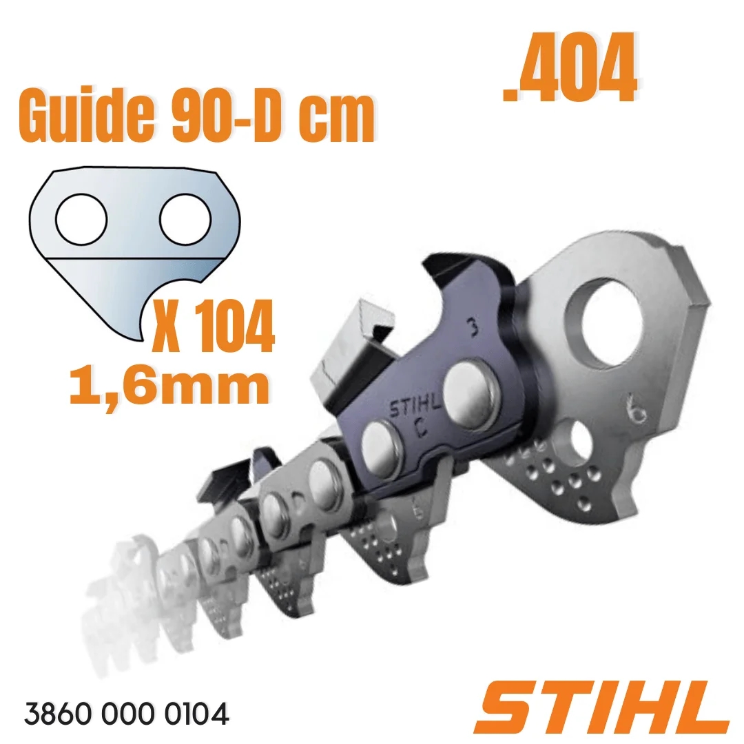- Với mã hiệu 3860-000-0104, đây là loại xích bước lớn chuyên dụng cho các dòng máy cưa "khủng" của STIHL như MS 661, MS 880, MS 881... đáp ứng các tiêu chuẩn khắt khe nhất trong lâm nghiệp.