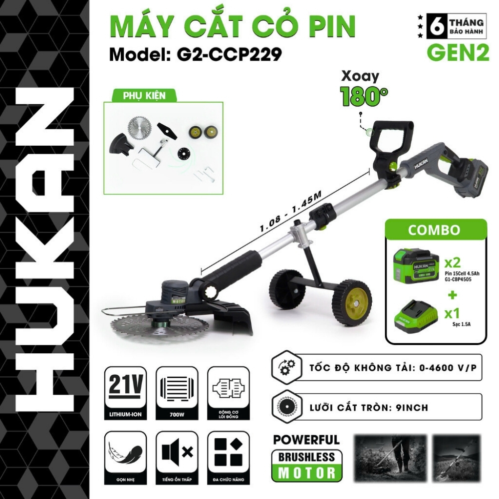 G2-CCP329 là dòng máy cắt cỏ dùng pin thế hệ thứ 2 với sự nâng cấp triệt để về động cơ và độ hoàn thiện cơ khí. Không còn sử dụng motor chổi than đời cũ, G2-CCP329 mang trong mình khối động cơ Brushless mạnh mẽ, giúp máy vận hành êm ái hơn, bền bỉ hơn và tiết kiệm năng lượng tối đa, giúp bạn hoàn thành công việc dọn dẹp vườn tược một cách nhanh chóng và thư thái.