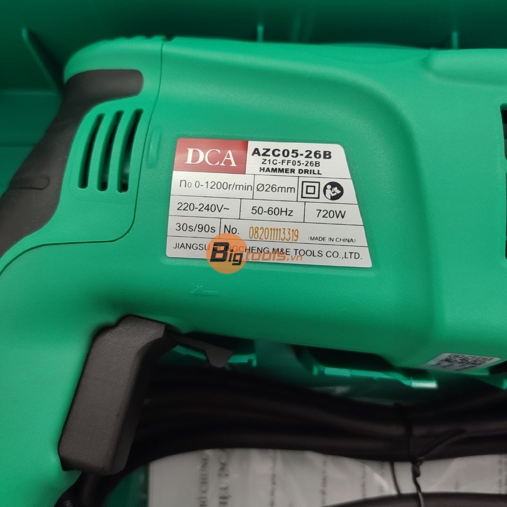- Máy Khoan Đục DCA AZC05-26B - 720W - 14mm chính hãng giá tốt kèm nhiều quà tặng hấp dẫn tại Bigtools Việt Nam. Bảo hành chính hãng. Giao hàng nhanh tận nơi. Tư vấn chính xác. Hotline: 0938.689.525 - 0933.253.369