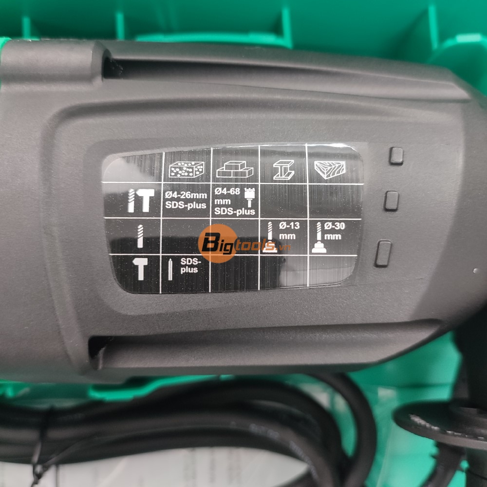 Cs: 720W, đk mũi đục 14 mm, đk mũi khoan tối đa 26 mm, điện áp sử dụng 220V- 50Hz, tốc độ không tải 0-1200 lần /phút, tốc độ đập 0-4000 lần/phút, trọng lượng 2.93 kg (có 3 chức năng -đảo chiều)