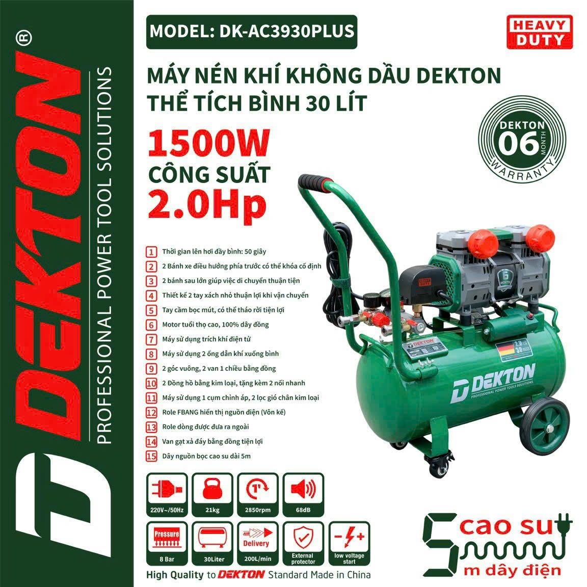 - Máy nén khí không dầu DEKTON DK-3930 Plus chính hãng giá tốt kèm nhiều quà tặng hấp dẫn tại Bigtools Việt Nam. Bảo hành chính hãng. Giao hàng nhanh tận nơi. Tư vấn chính xác. Hotline: 0938.689.525 - 0933.253.369