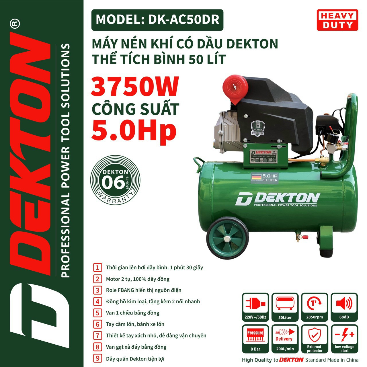 - Máy nén khí trực tiếp DEKTON DK-AC50DR chính hãng giá tốt kèm nhiều quà tặng hấp dẫn tại Bigtools Việt Nam. Bảo hành chính hãng. Giao hàng nhanh tận nơi. Tư vấn chính xác. Hotline: 0938.689.525 - 0933.253.369
