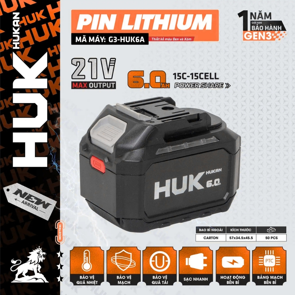 - PIN 15Cells 6.0Ah (GEN 3) - G3-HUK6A chính hãng giá tốt kèm nhiều quà tặng hấp dẫn tại Bigtools Việt Nam. Bảo hành chính hãng. Giao hàng nhanh tận nơi. Tư vấn chính xác. Hotline: 0938.689.525 - 0933.253.369