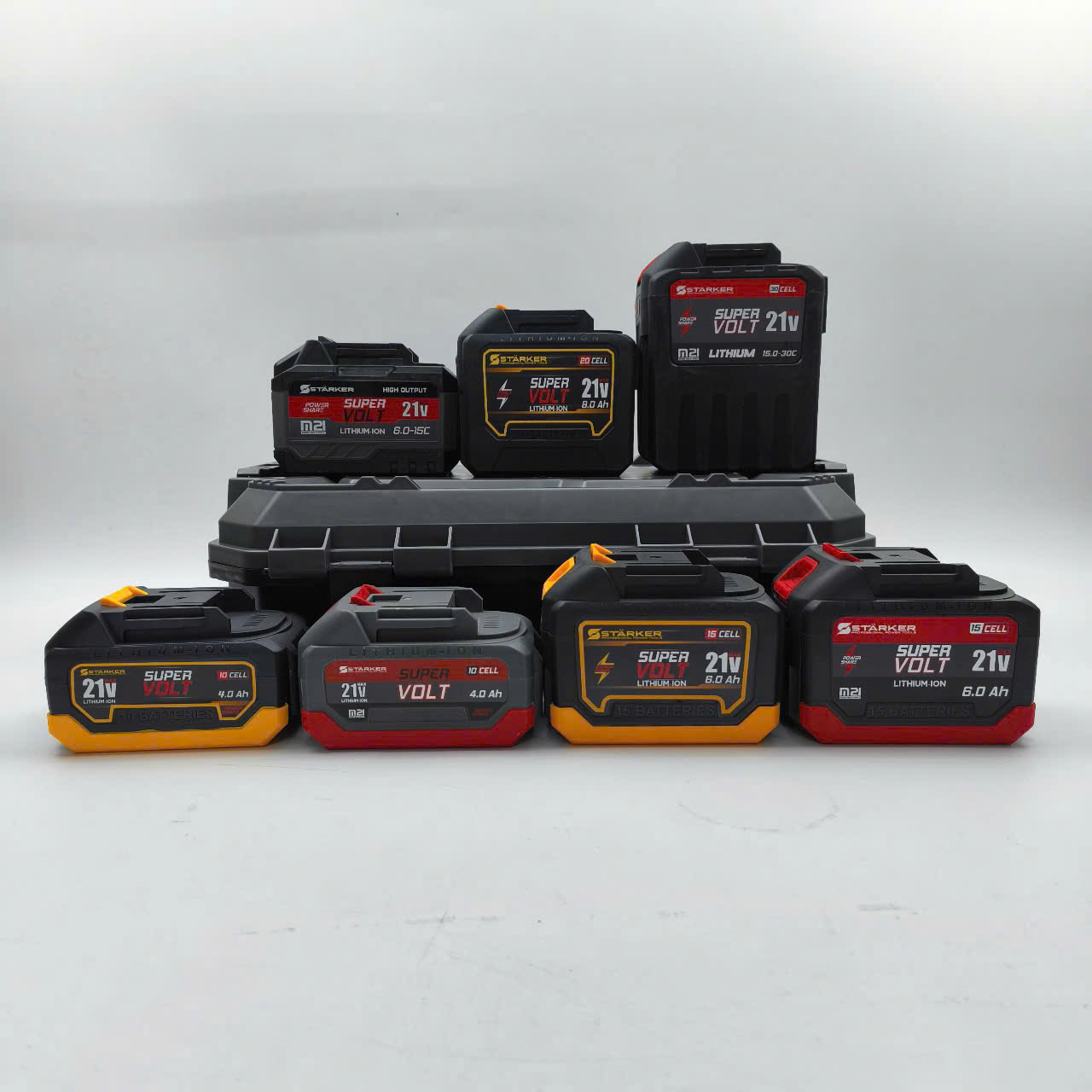 Pin Starker 30 Cells - 15Ah công suất cao chuyên dùng cho quạt và đèn thuộc hệ sinh thái pin chân M21 (21V), dùng nguồn pin lithium-ion dung lượng cao được thiết kế cho các công cụ đòi hỏi hiệu suất mạnh như máy khoan, máy vặn vít xung lực và máy cưa.