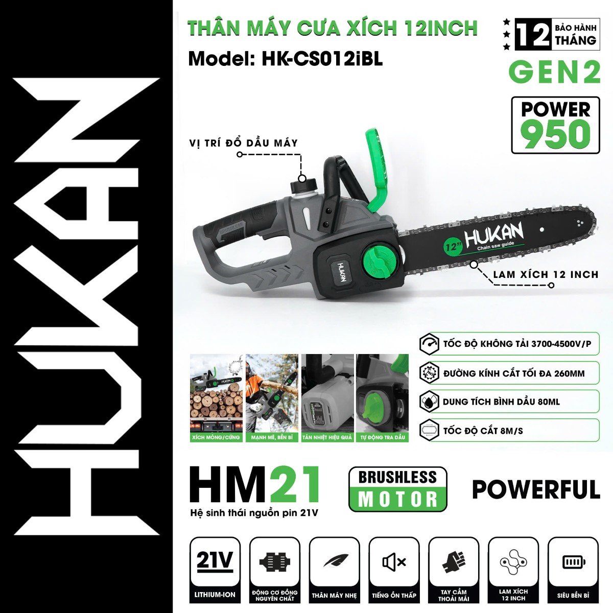 - Thân Máy Cưa Xích Pin 12Inch (Gen2 Pro) HUKAN - BODY HK/CS012IBL chính hãng giá tốt kèm nhiều quà tặng hấp dẫn tại Bigtools Việt Nam. Bảo hành chính hãng. Giao hàng nhanh tận nơi. Tư vấn chính xác. Hotline: 0938.689.525 - 0933.253.369